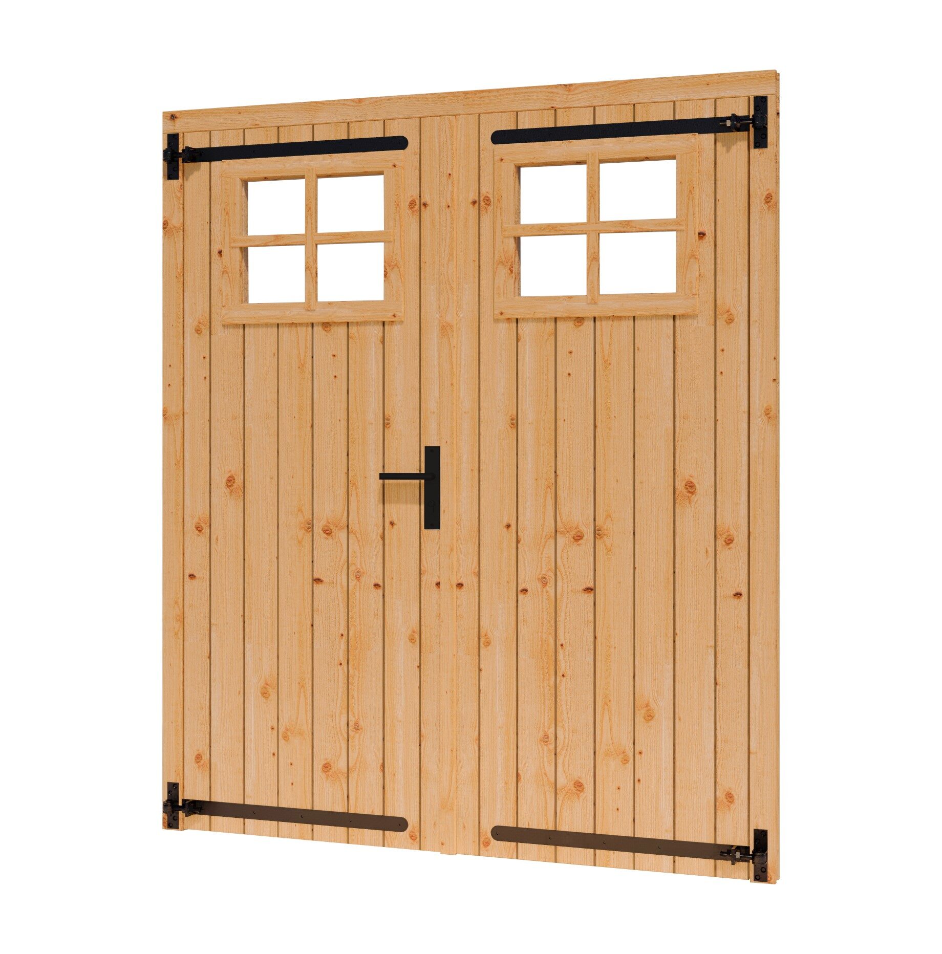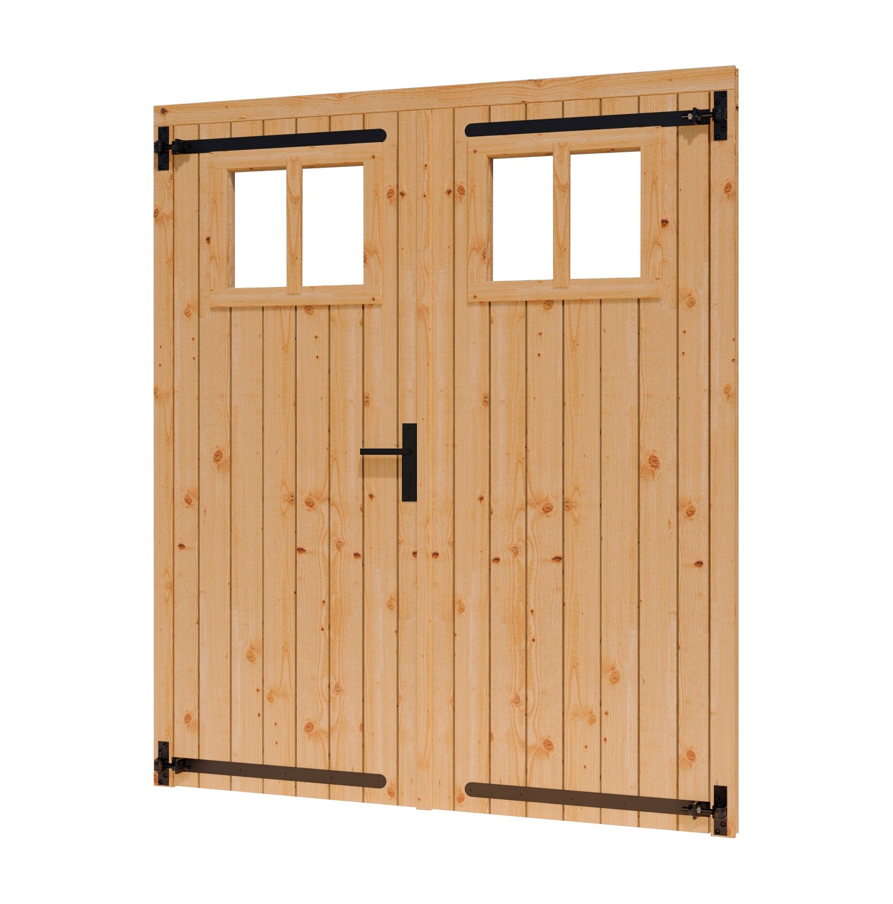 DOUGLAS Opgeklampte deur dubbel met RAAM 1560×1950+kozijn 1696x2021mm onbeh, excl H&S