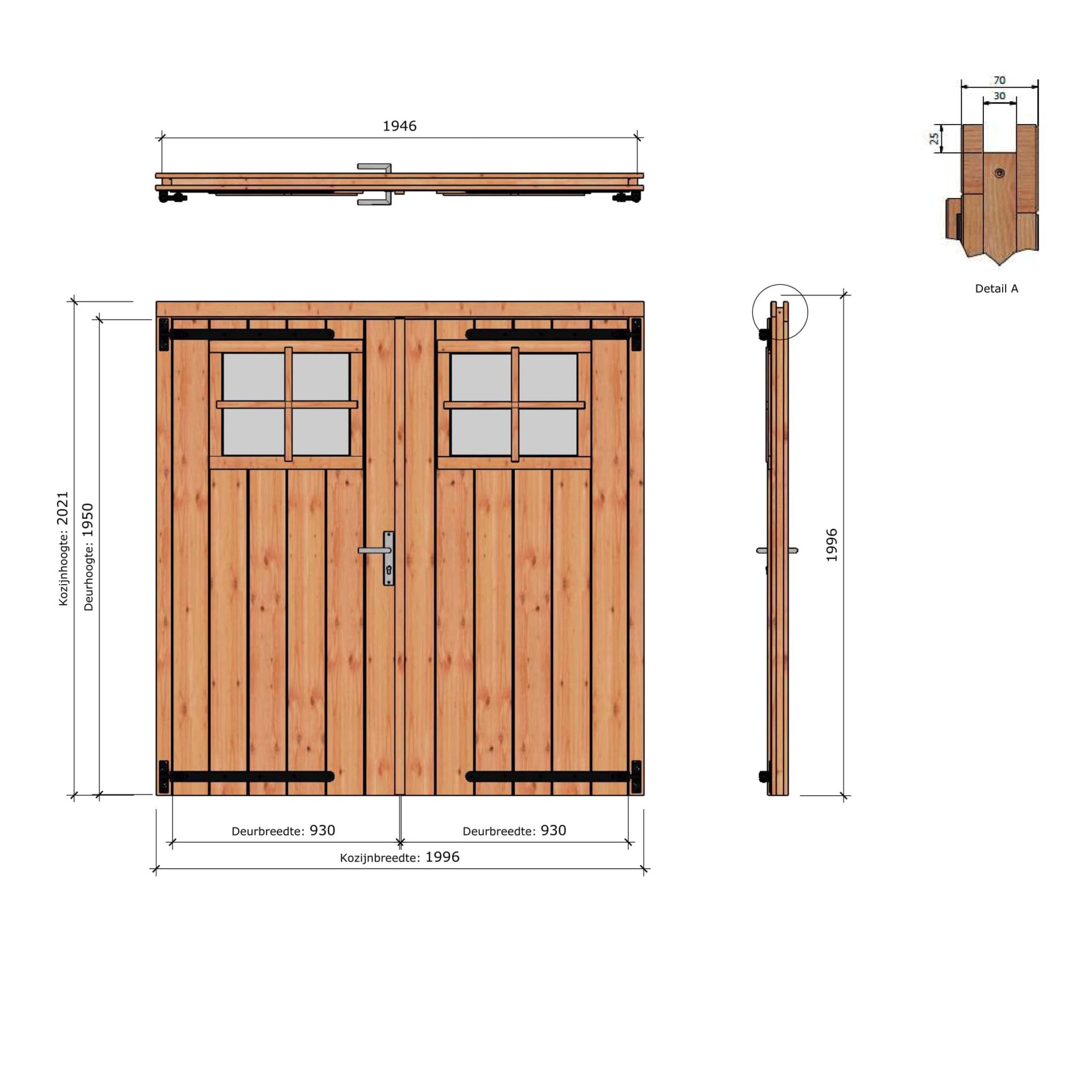 DOUGLAS Opgeklampte deur dubbel met RAAM 1860×1950+kozijn1996x2021mm onbeh, excl H&S
